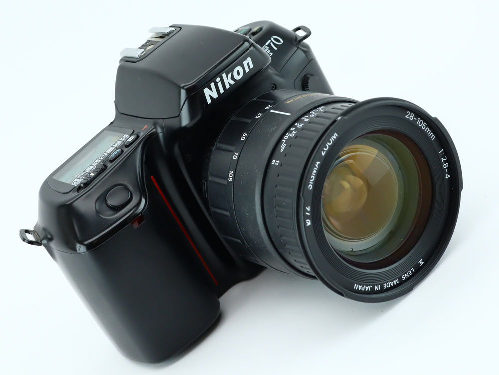 This Nikon F70 + Sigma zoom 28-105mm 2.8-4 is a great entry-level SLR camera. It has been thoroughly tested and is in excellent condition, offering reliable performance and great results. The 28-105mm zoom lens provides a great range of focal length options for any photographer.