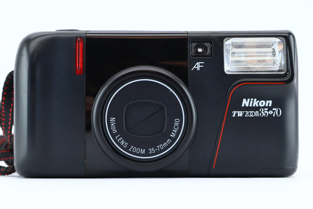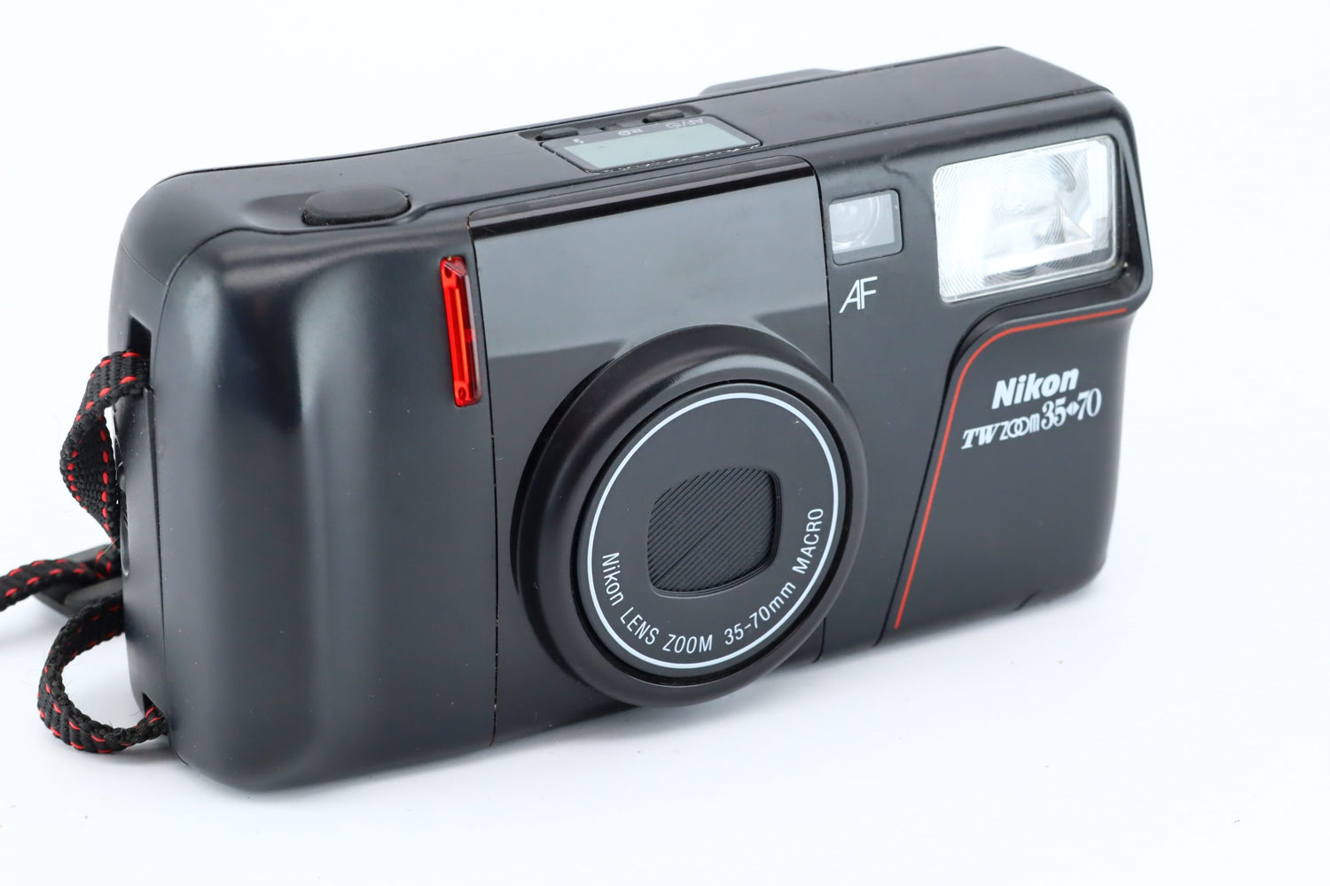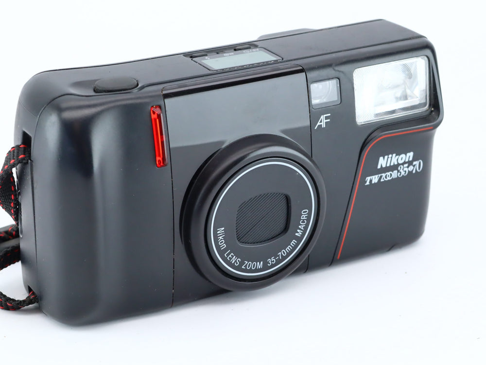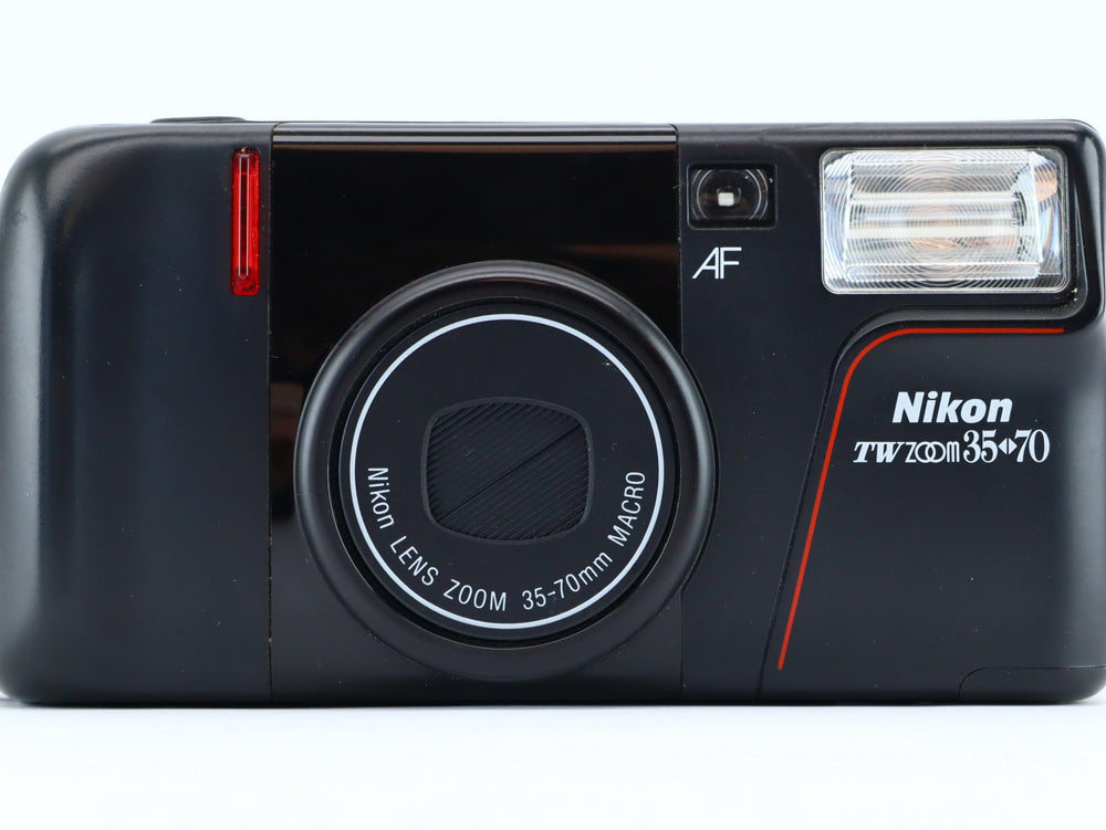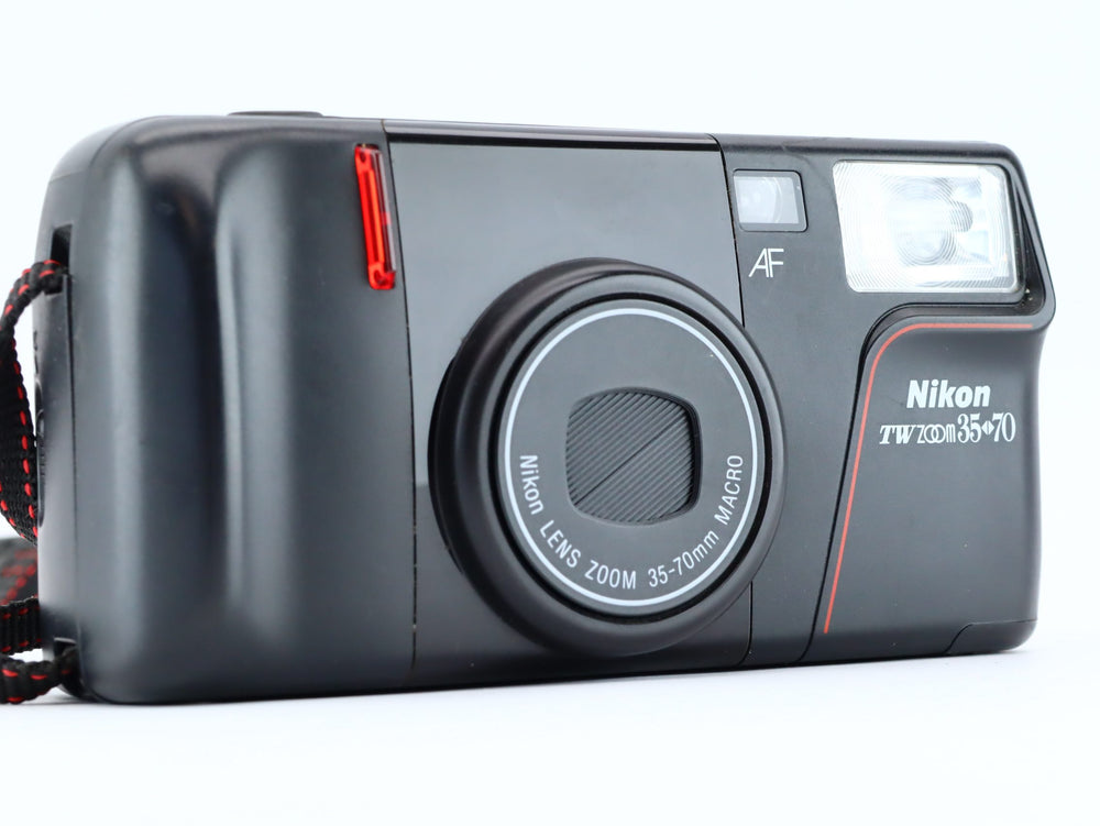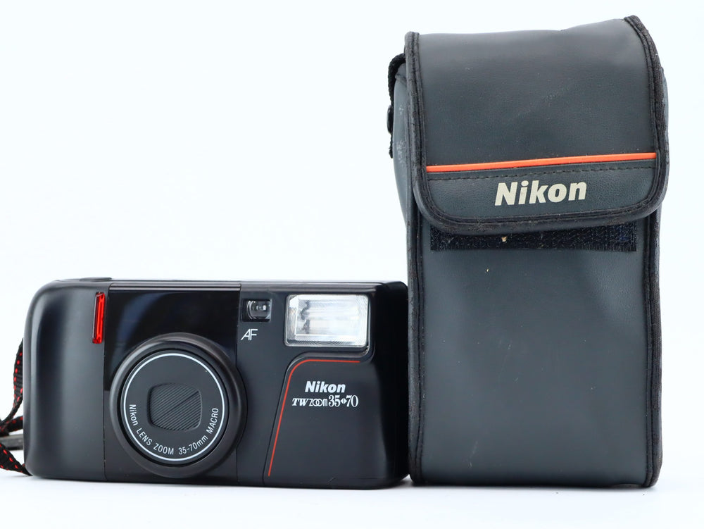 The Nikon TW Zoom 35-70 launched in 1990 and was the first autofocus camera that gave users the option to adjust the focal length. The camera uses a sharp lens system which allows you to shoot at 35mm F4 and 70mm F7.6. The Nikon TW Zoom 35-70 is a great camera for both beginners and pro’s. it comes with the original camera bag.