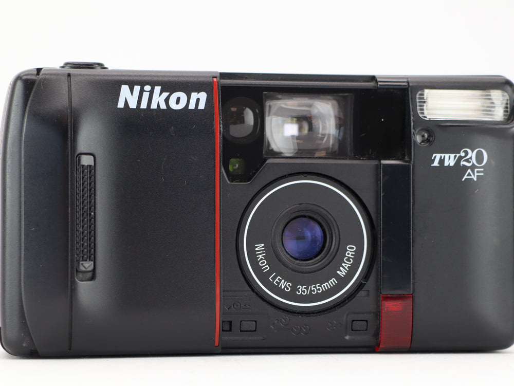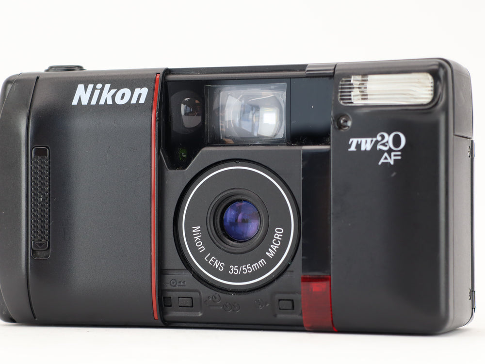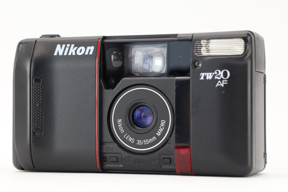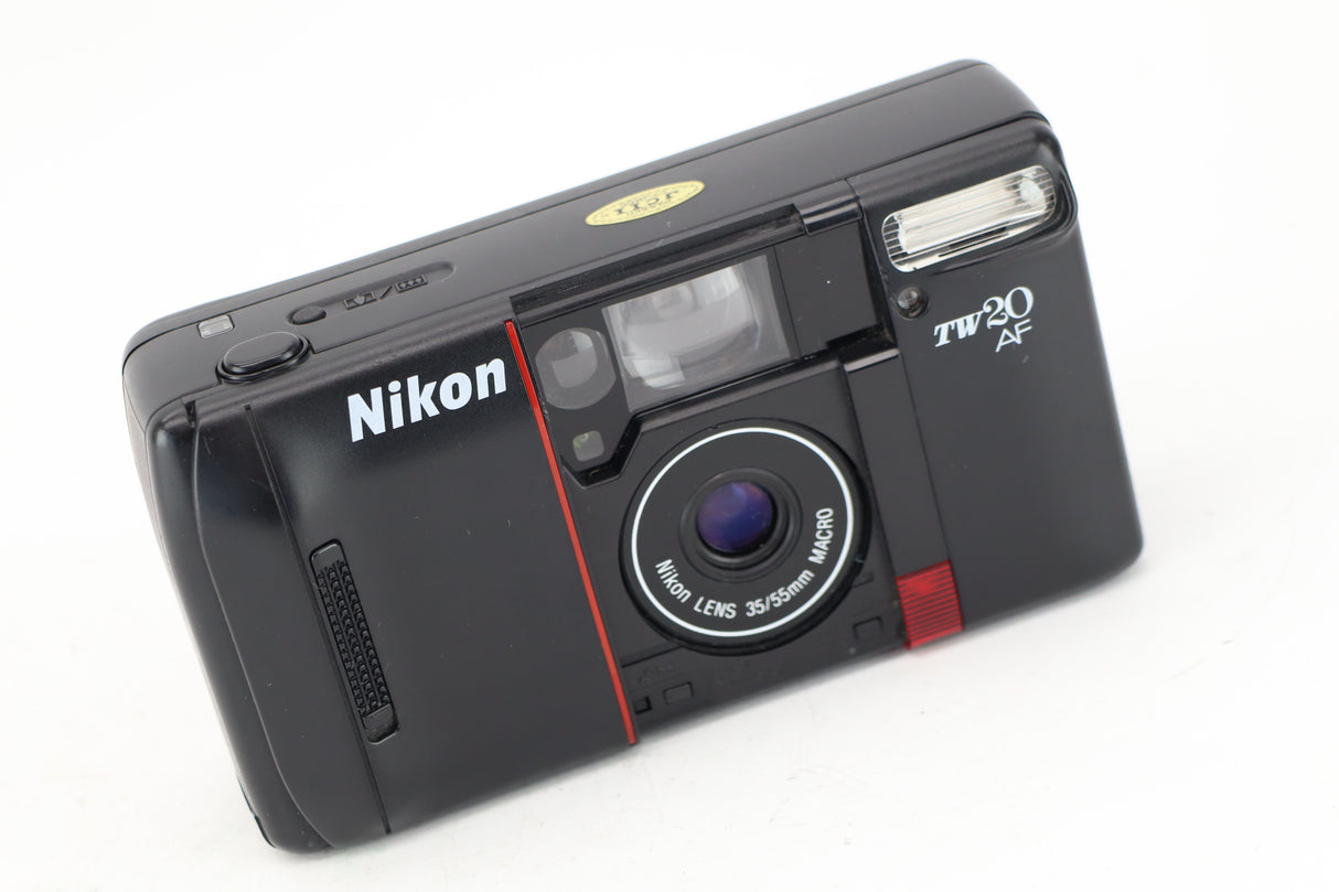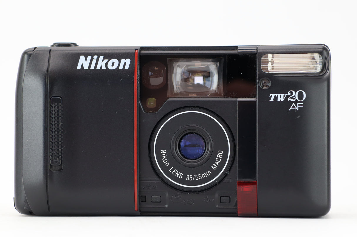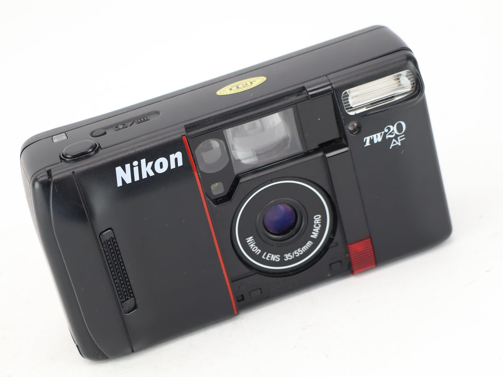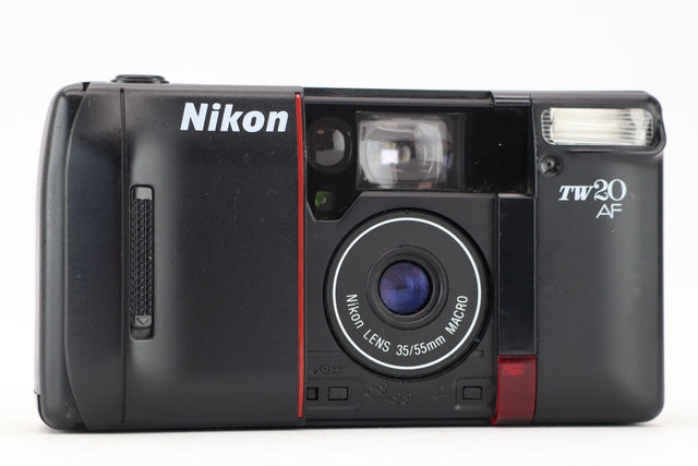 The Nikon TW20 is a versatile compact 35mm film camera that combines convenience with quality, making it ideal for casual photographers and enthusiasts. Featuring a dual focal length lens system, the TW20 offers both 35mm and 55mm settings, providing flexibility for a variety of shooting scenarios, from wide-angle landscapes to closer portraits. Its automatic functions ensure easy operation, while Nikon's renowned optics deliver clear and vibrant images.