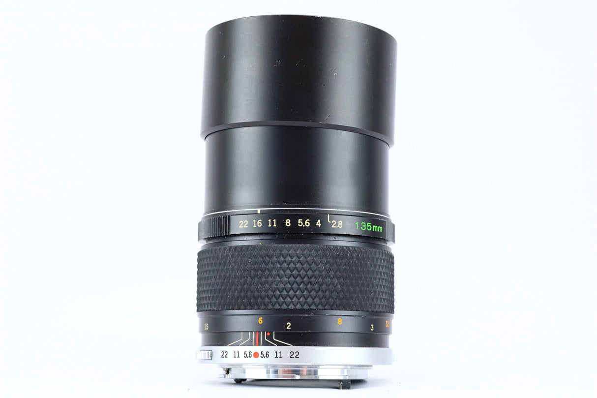 This focal length is often considered the first true telephoto. It achieves very noticeable depth of field effects. Olympus has two 135mm telephoto lenses ever since the very early OM system was introduced. Although it shares many common features with the slower Zuiko counterpart of E-Zuiko 135mm f/3.5, the E-Zuiko 135mm f/2.8 which has a faster lense speed, a fine performance and easy handling has made it a favorite first telephoto lense among the many OM photographers all these years.