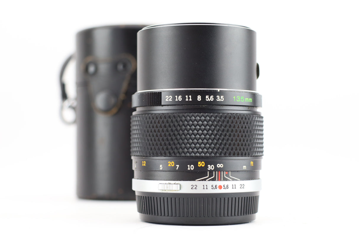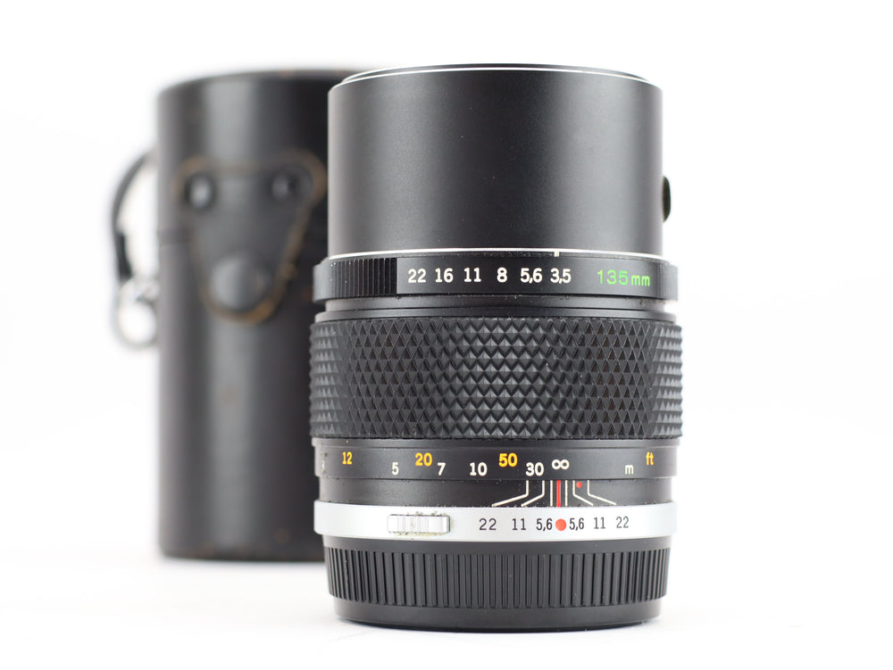 Product Information: The Olympus OM 135mm f/3.5 lens is known for its optical quality and reliability. Its telephoto reach makes it suitable for a wide range of subjects, from detailed close-ups of distant landscapes to crisp portraits. The lens's f/3.5 aperture offers a practical balance between depth of field control and sufficient light-gathering ability. The compact design ensures that it complements the OM-series cameras without adding significant bulk, making it a great addition to any photographer's kit who values both performance and portability.