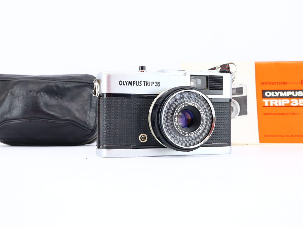 Excellent Olympus Trip 35 40mm 2.8 rangefinder camera. Tested and working there is no damage on the camera. The camera is in good condition and it delivered with a camera cover and instructions book.