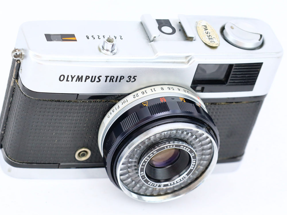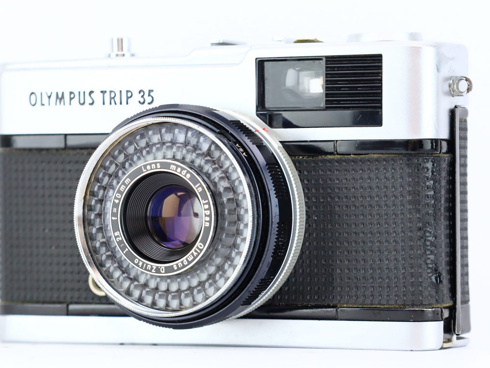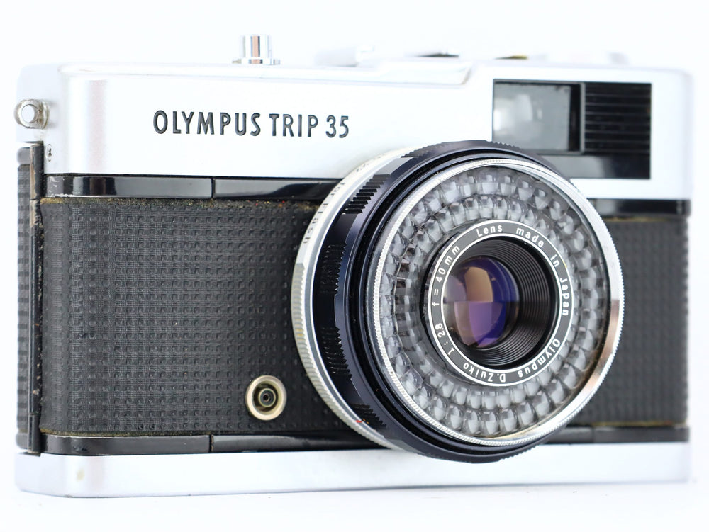 The Olympus Trip 35 is a fully-automatic 35mm compact camera, manufactured by Olympus from 1967 to 1984, during which time over ten million units were sold, though this oft-quoted figure is likely to have included later plastic-bodied Olympus cameras with Trip branding, as the original Trip 35 had serial numbers going up to around 5,400,000. The auto-exposure mechanism is effectively solar-powered by a selenium cell surrounding the lens, and consequently the camera runs without batteries. Until June 1978, the shutter button was silver-coloured metal. After that date, all Trips had a black plastic button.