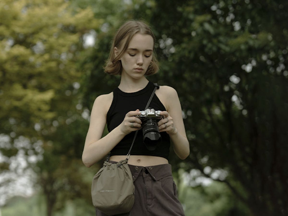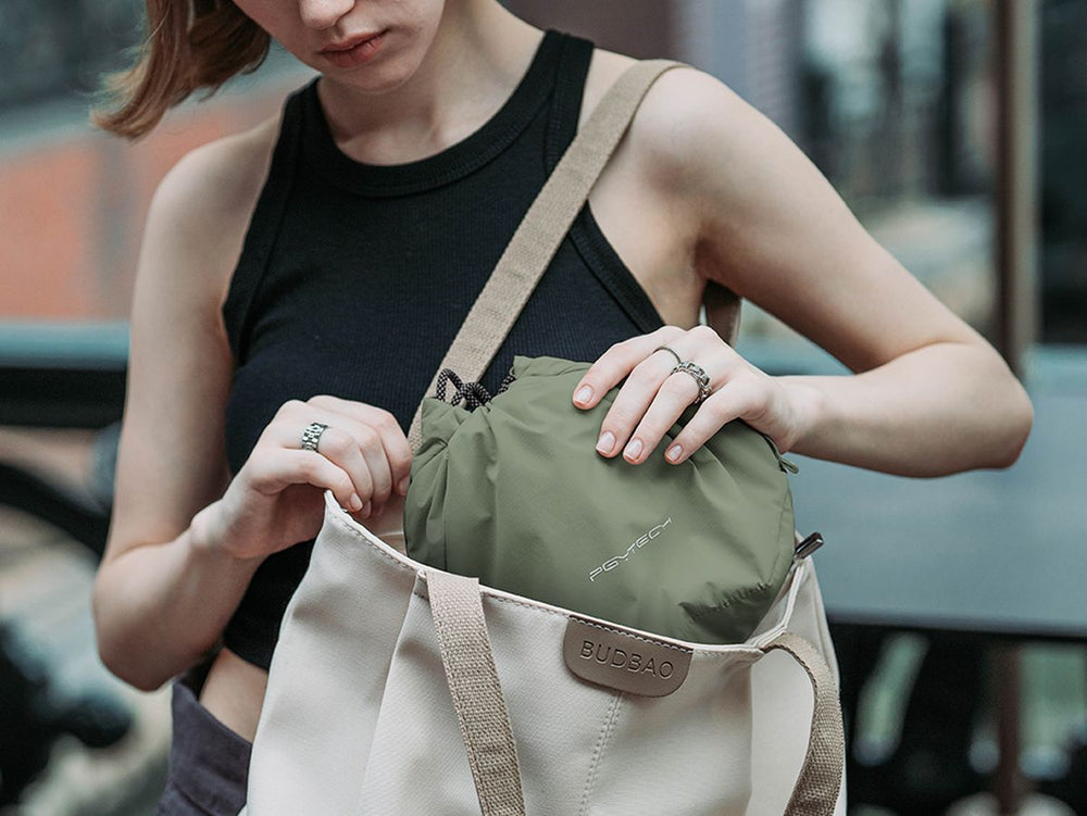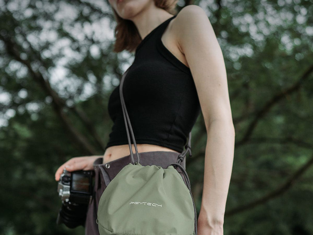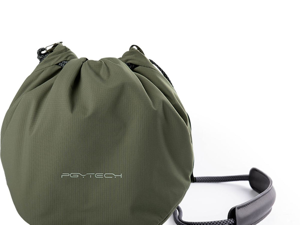 The PGYTech OneGo Drawstring Bag, presented in a bold Forest Green color, revolutionizes the conventional camera bag with an optimal blend of style and adaptability. It proposes four versatile modes and can serve as a handbag, shoulder bag, cube, and camera strap.