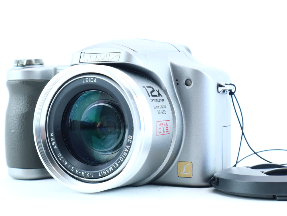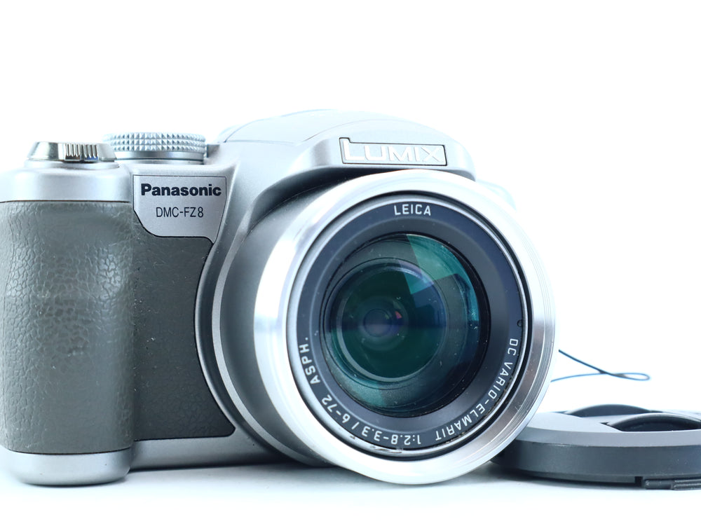 The Panasonic Lumix DMC-FZ8 is a versatile digital camera featuring a high-quality Leica DC Vario-Elmarit lens with a powerful 12x optical zoom. Developed by Panasonic, this model offers a bridge-camera design with advanced controls and a wide zoom range. Serial number: I7SF03401R.