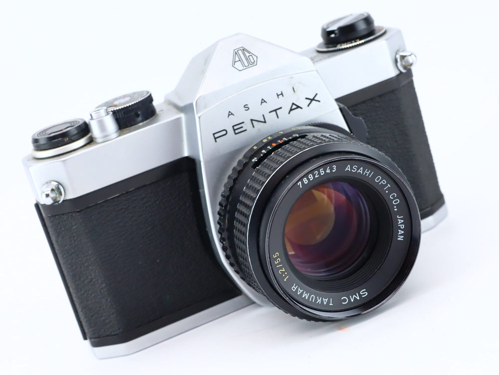 The Pentax Spotmatic refers to a family of 35mm SLR cameras manufactured by the Asahi Optical Co Ltd , later known as Pentax corporation between 1964 and 1976. All Pentax Spotmatics used the M42 screw mount which was developed before WWII by Zeiss and Praktica.