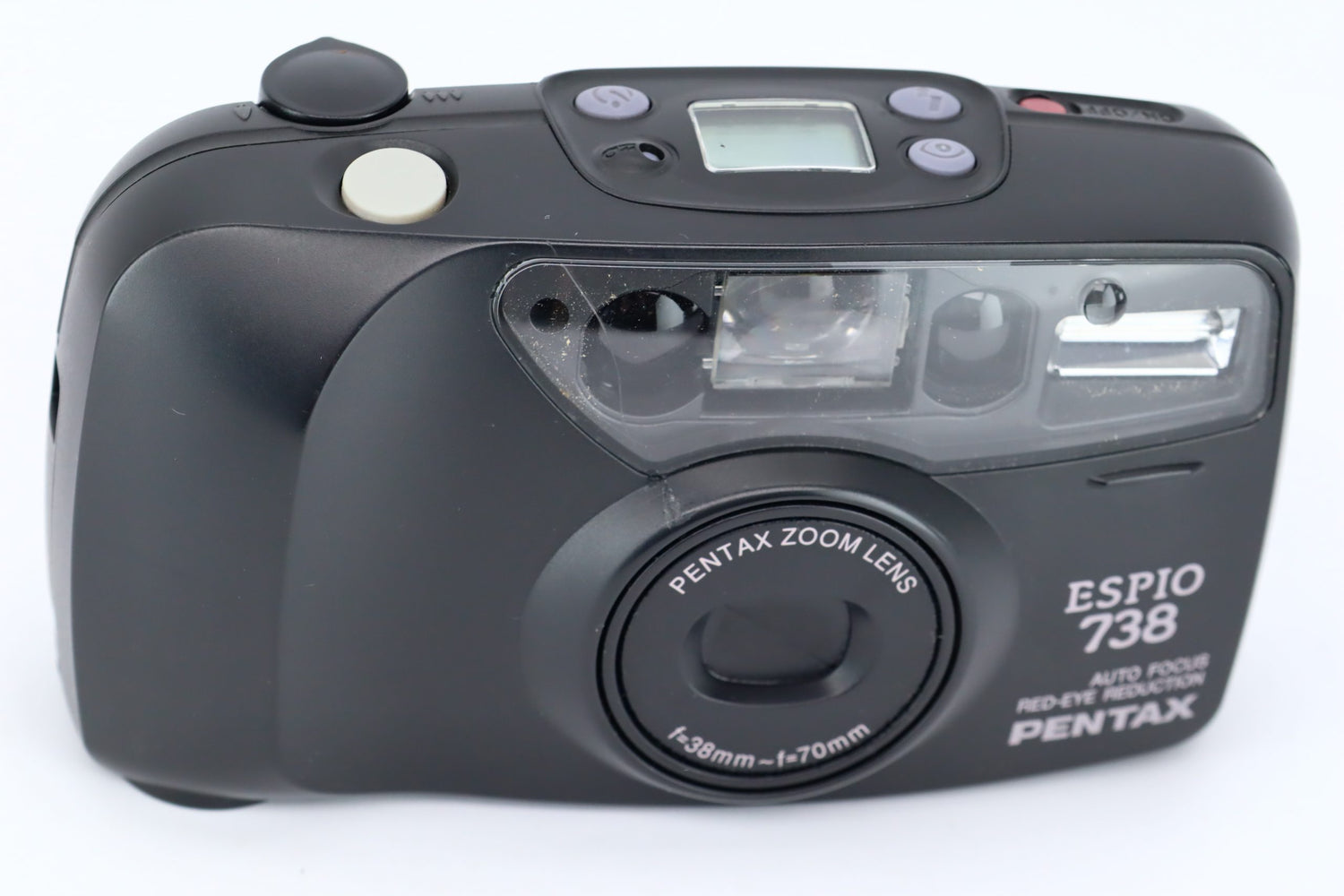 The Pentax Espio 738 is a 35mm compact camera with autofocus and a zoom lens, issued by Pentax in 1995. Part of the Pentax Espio IQZoom series. Newer versions include Espio 738G and Espio 738S. It was made in China