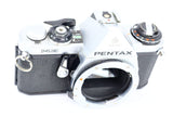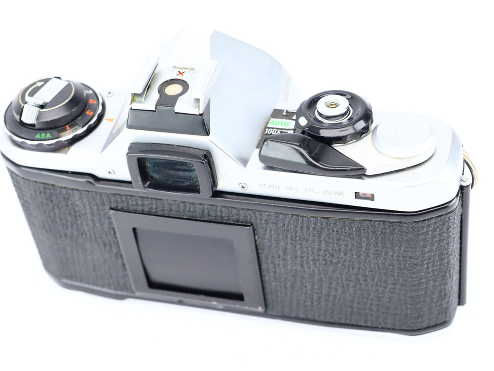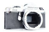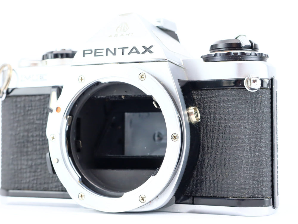 The Pentax ME is a compact and lightweight 35mm film SLR, known for its simple operation, durable build, and excellent image quality. Designed for both beginners and experienced film photographers, the ME features aperture-priority automatic exposure, making it easy to capture well-exposed shots while still offering manual creative control.