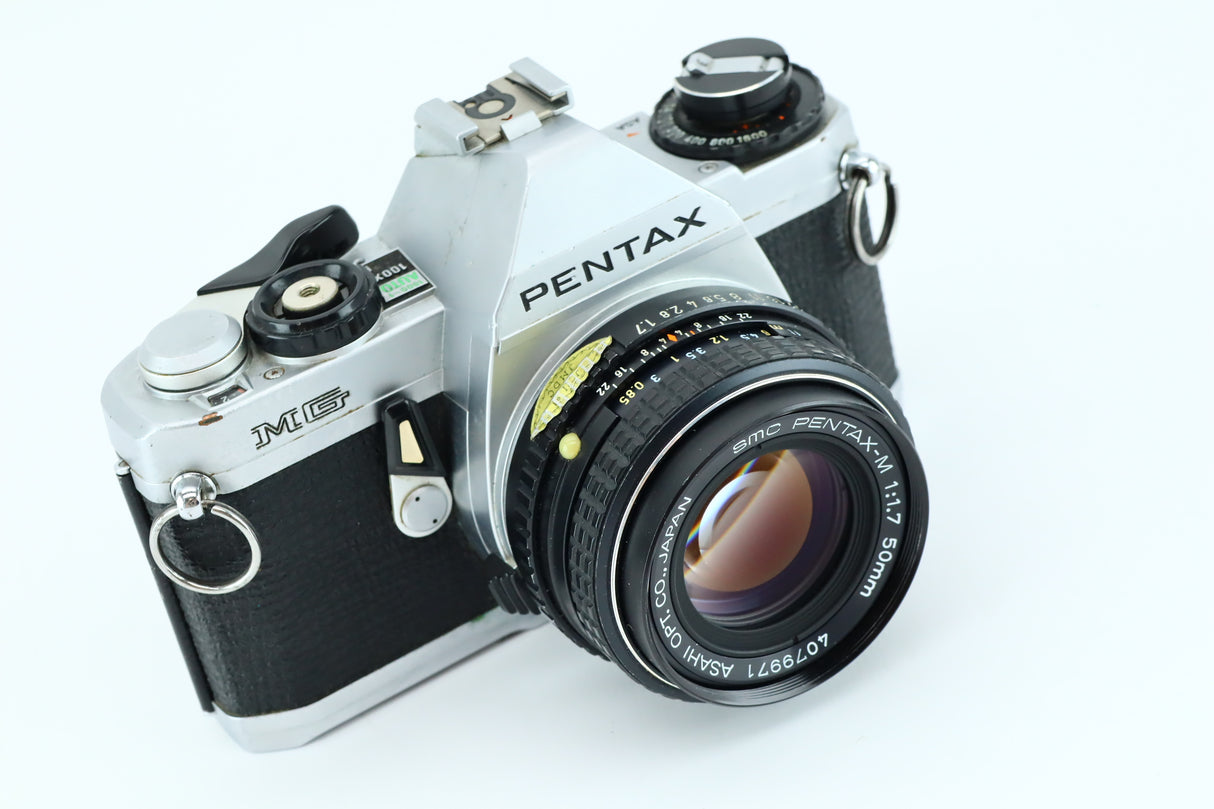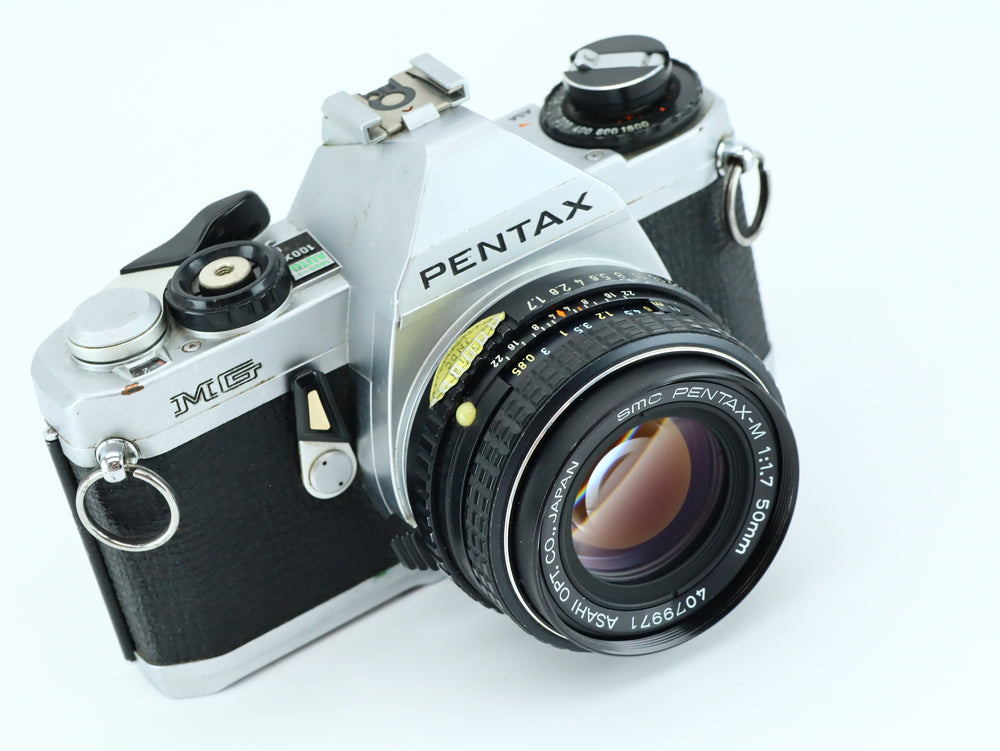 The Pentax MG camera with a SMC 1,7 50mm lens is a versatile and high-performing combination for any photography enthusiast. With its top-quality lens, it offers precise, clear, and stunning images with every shot. Capture the world in stunning detail with Pentax.