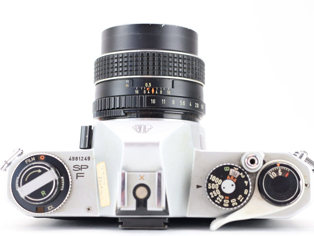 The Pentax Spotmatic SP F is a classic 35mm SLR camera renowned for its robust build quality and exceptional reliability. Introduced in the early 1970s, the SP F model stands out with its advanced open-aperture metering system, which provides accurate exposure readings and ease of use. This camera is a favorite among film enthusiasts for its simplicity, durability, and compatibility with a wide range of M42 screw mount lenses.