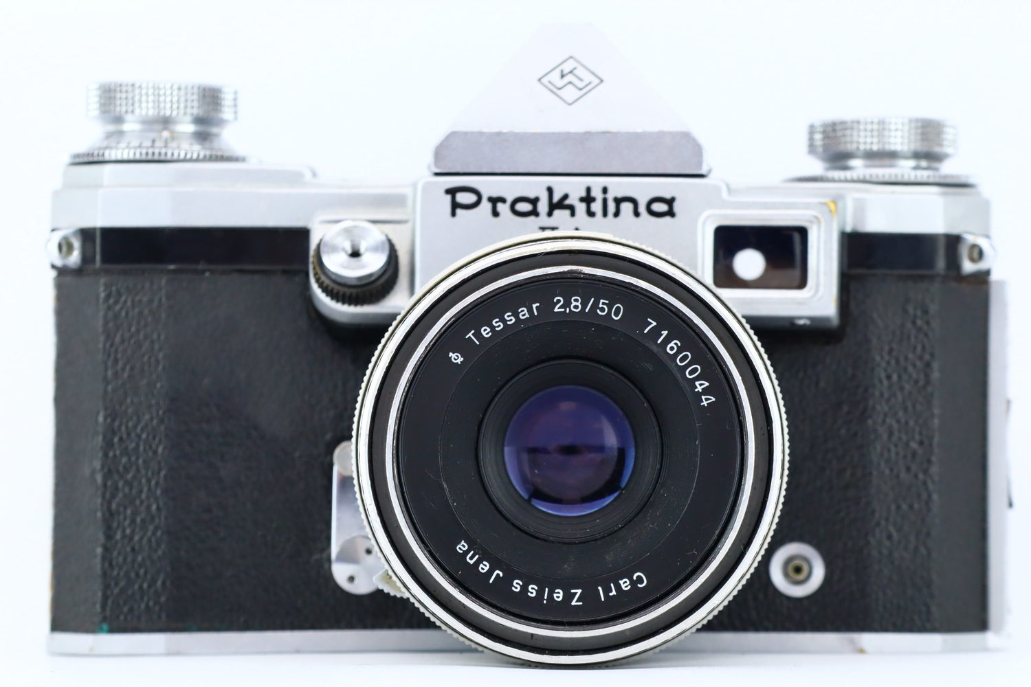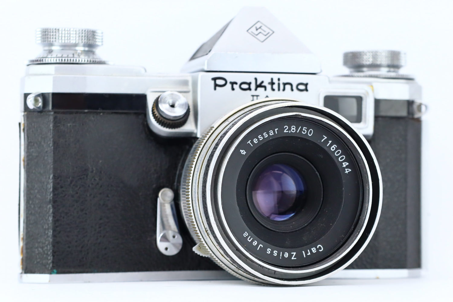 Excellent Praktina IIA + Carl Zeiss Tessar Chrome 2,8/50 SLR camera. Tested and working the camera is used but there is no damage on the camera. The camera is in good condition.