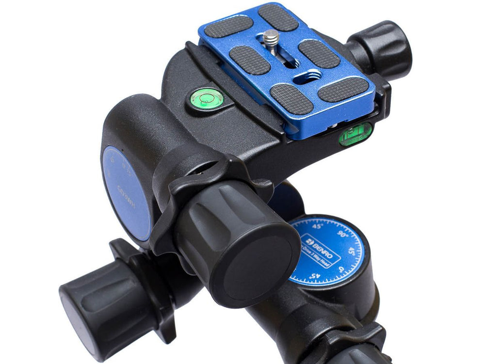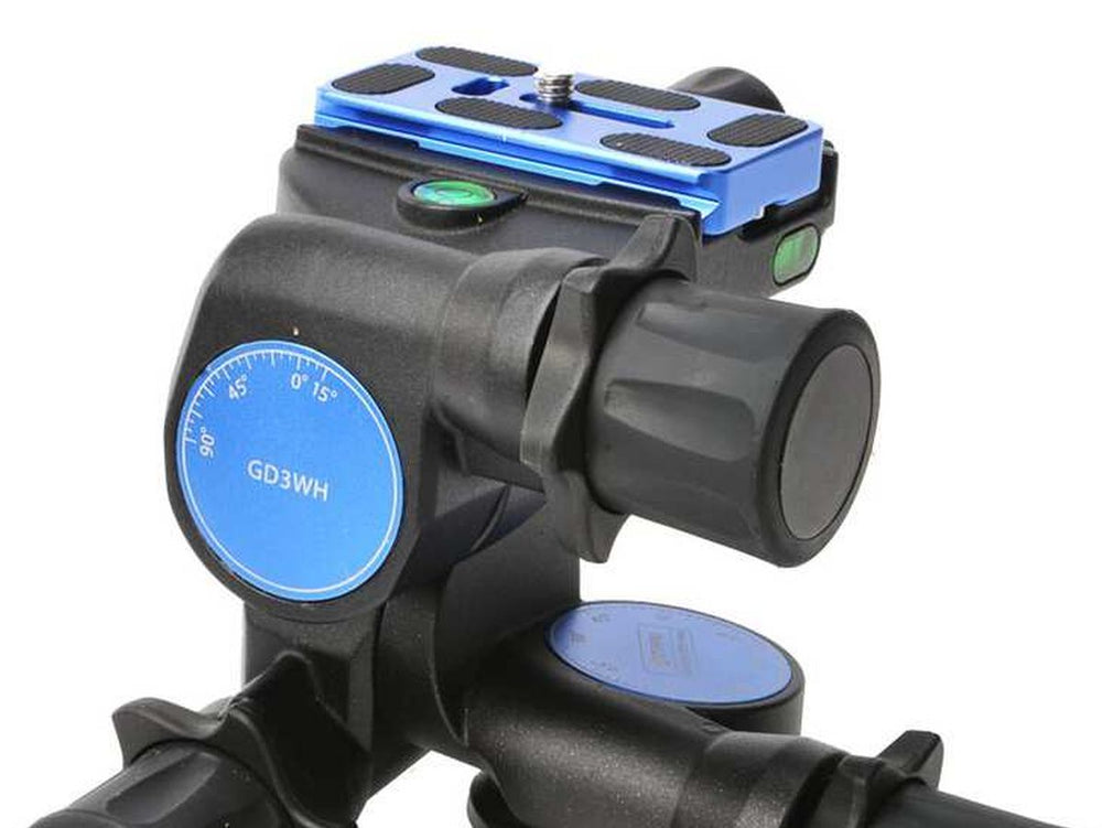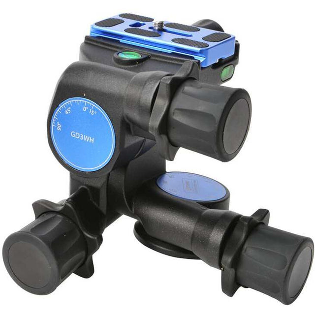 Equipped with three levels and a degree scale, this tripod head allows you to verify if your camera is correctly attached to it. An additional benefit of the GD3WH is the included quick release plate which is compatible with Arca-Swiss, enabling you to easily attach cameras with a 1/4"-20 tripod connection. Whether you are traveling or working in a studio, its compact size and light weight make it a breeze to transport.