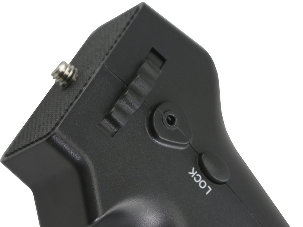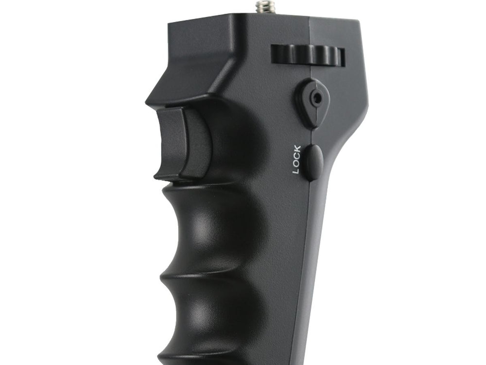 This all-in-one remote handle doesn't just end there. On the handle’s underside, there's a 1/4"-20 threaded hole. This component allows the handle to be conveniently placed on a tripod, extending its versatility.