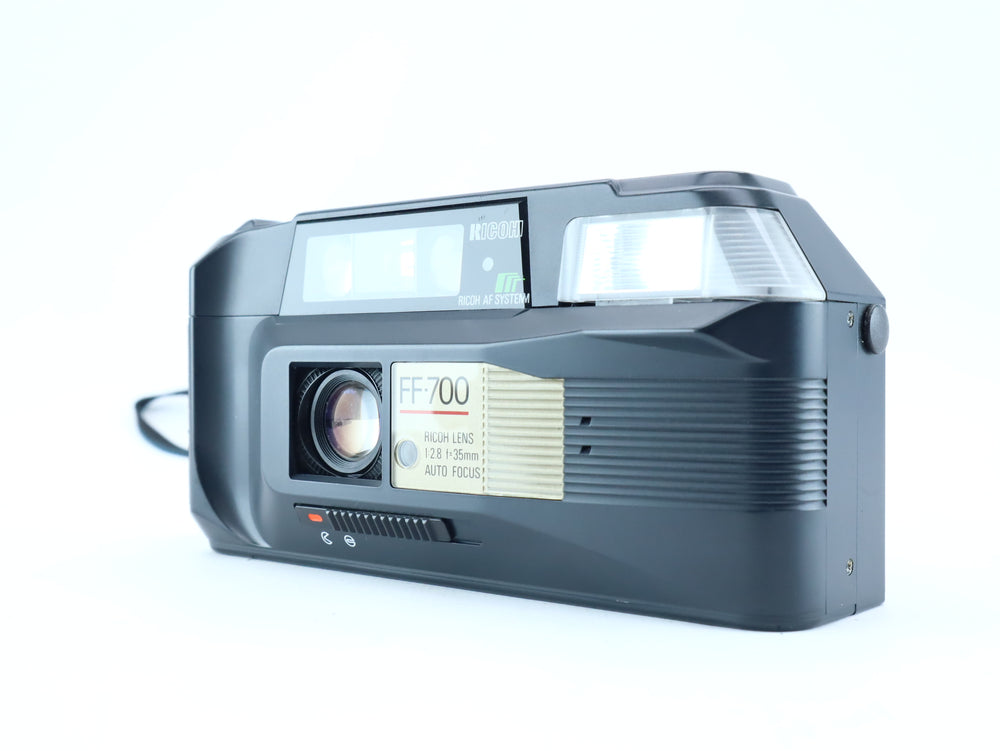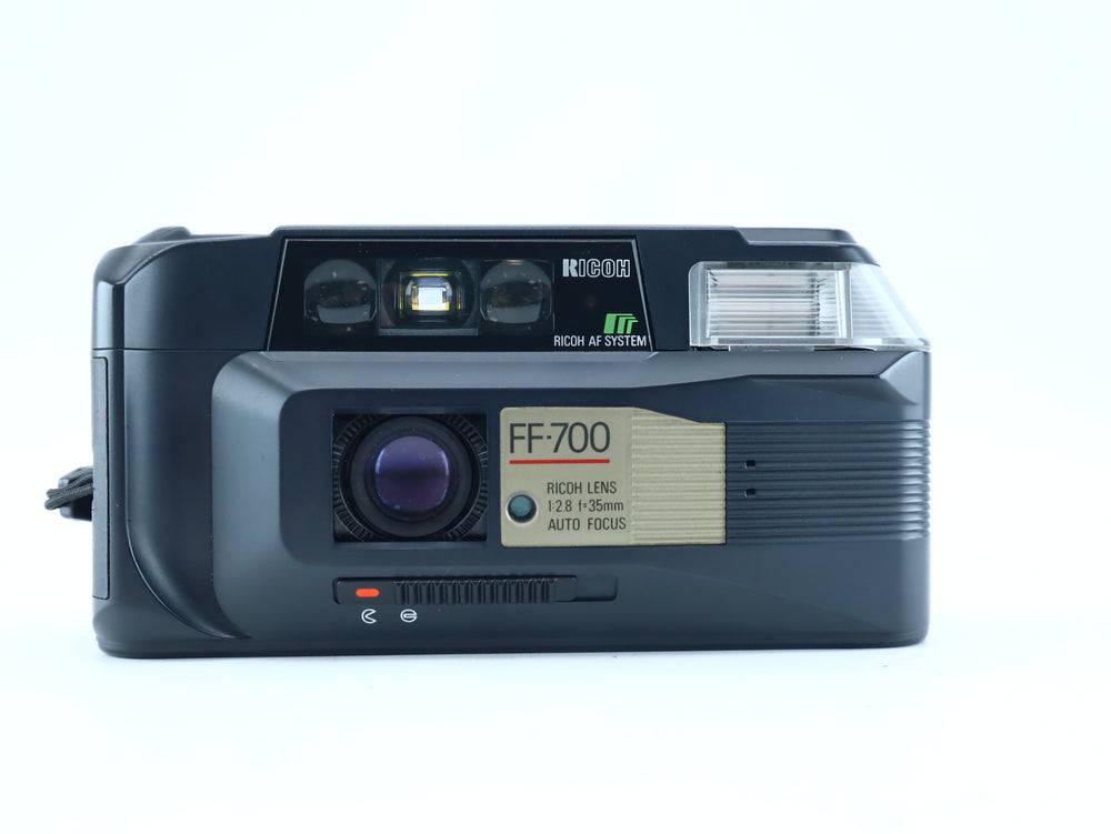 The Ricoh FF-700 is a compact 35mm point-and-shoot film camera featuring a sharp and fast 35mm f/2.8 Ricoh lens with autofocus. Designed for simplicity and ease of use, it offers quick auto-loading, auto-winding, and a reliable built-in flash—making it a perfect companion for casual street, travel, or everyday photography.