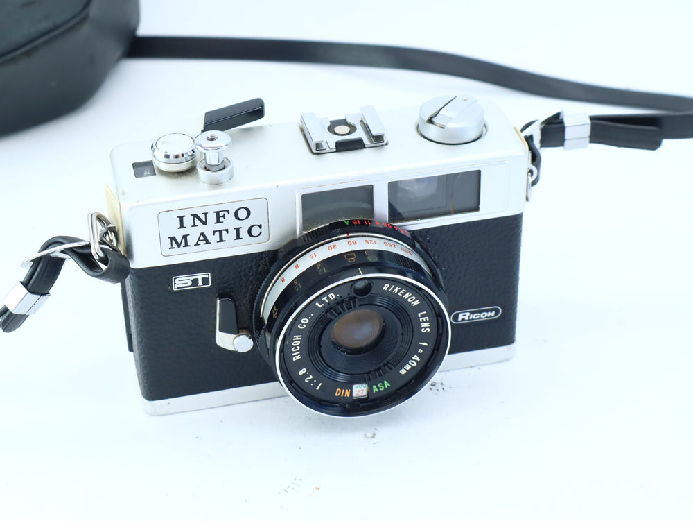 The Ricoh ST is a straightforward 35mm film camera designed for beginners and casual photographers. Featuring a fixed Kikenon 40mm f/2.8 lens, it offers a natural field of view and a bright aperture suitable for various lighting conditions. Its compact and lightweight design makes it a convenient choice for everyday photography, street scenes, and travel.