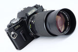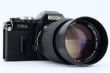 The Ricoh XR-6 is a 35mm manual focus SLR camera, introduced in the 1980s, that offers a straightforward and reliable experience for film photographers. Known for its compact design and ease of use, the XR-6 is a great choice for those who prefer fully manual control. Paired with a 135mm f/2.8 lens, this setup is ideal for portrait and telephoto photography, offering a balance of sharpness and beautiful background blur.