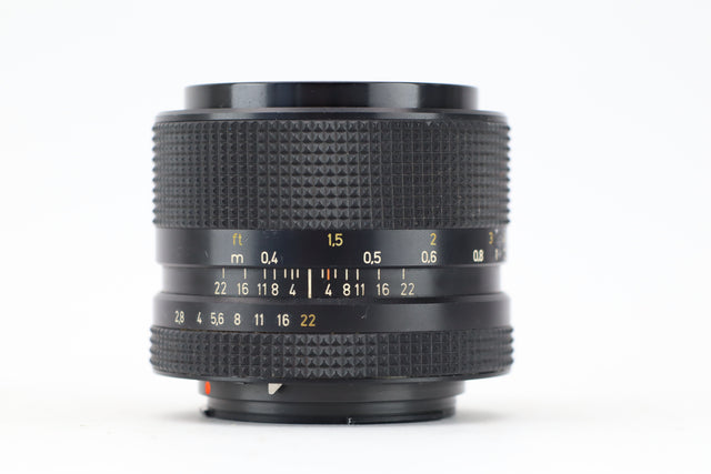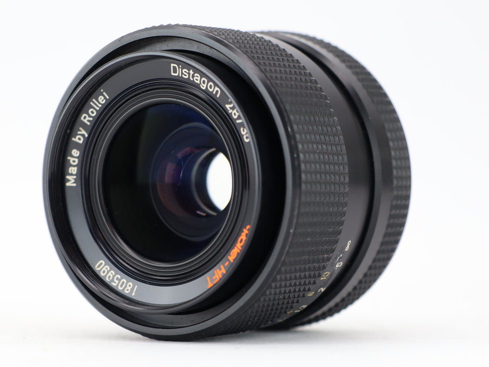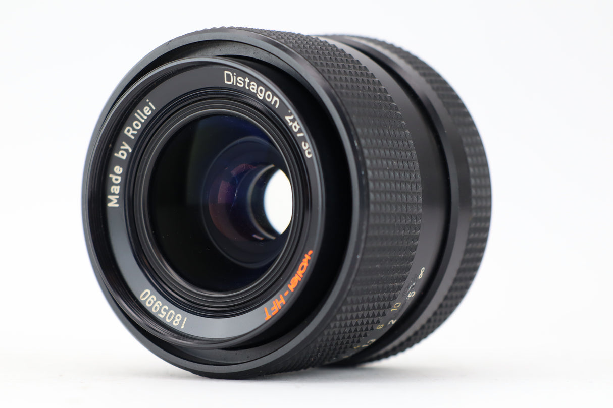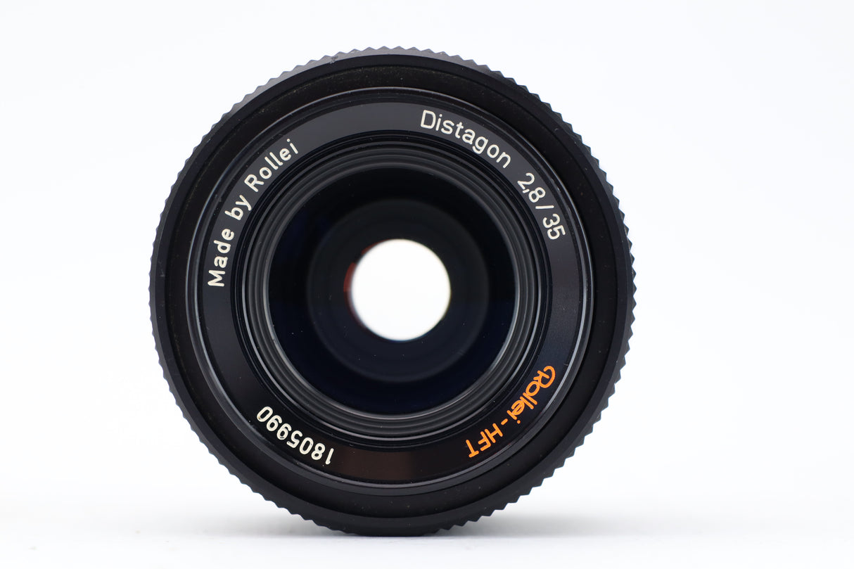 The Rollei HFT 35mm f/2.8 is a high-quality wide-angle lens known for its exceptional optical performance and robust construction. Designed for use with Rollei SLR cameras, this lens features Rollei's High Fidelity Transfer (HFT) multi-coating technology, which enhances light transmission and reduces reflections, resulting in stunningly sharp and vibrant images. The 35mm focal length is ideal for landscapes, street photography, and architectural shots, offering a versatile field of view.