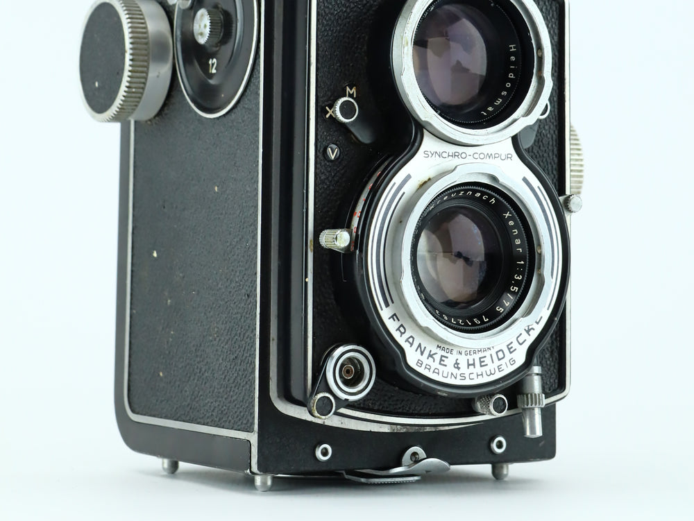 The Rolleicord F&H camera provides pristine image quality paired with Xenar 1:3,2/75 - 1:3,5/75 lens capabilities, allowing for ultimate control and versatility. Its components ensure a crisp and clear shot in a variety of lighting and distance settings, making it an ideal camera for any photography enthusiast.