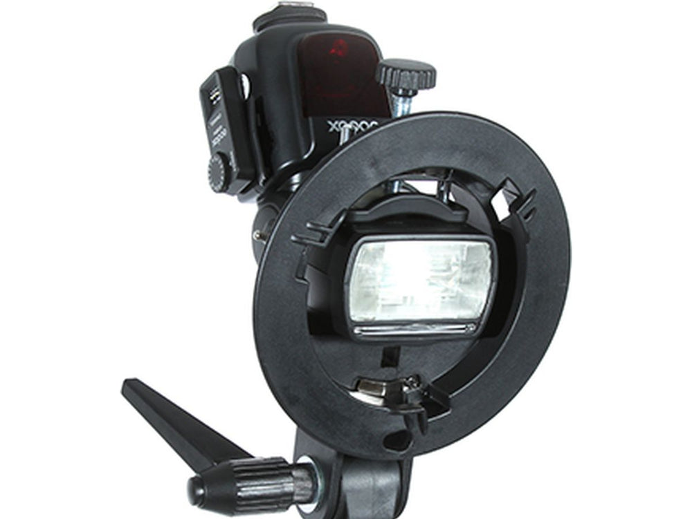 The Godox S-Type Speedlite bracket is a standout innovatively compact, effortlessly portable design that needs no assembly or disassembly. With it, you can conveniently set up and effortlessly add Bowens-mount light accessories to achieve artistic light effects. The package comes with an 80x80cm softbox and a grid.