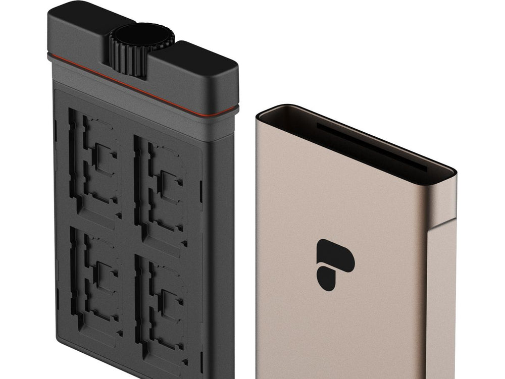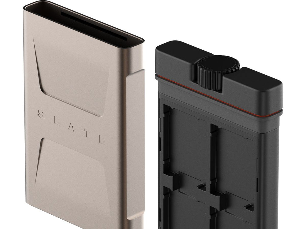 The Slate Edition II features an anodized aluminium exterior shell available in three striking color schemes. Inside this sturdy shell lies a two-sided tray that accommodates two card inserts, front and back, ensuring complete protection of your contents against physical elements. This memory card storage solution is fully capable of enduring weather incursions, shock impacts, and intense pressure.
