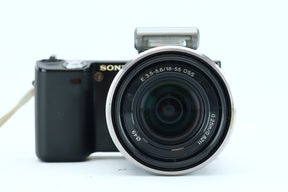 Paired with the Sony E 18–55mm f/3.5–5.6 OSS (SN: 1939991), this kit covers a useful zoom range and includes Optical SteadyShot (OSS) image stabilization for sharp handheld shots. The lens has a minimum focus distance of just 25cm, making it suitable for both general and close-up photography.