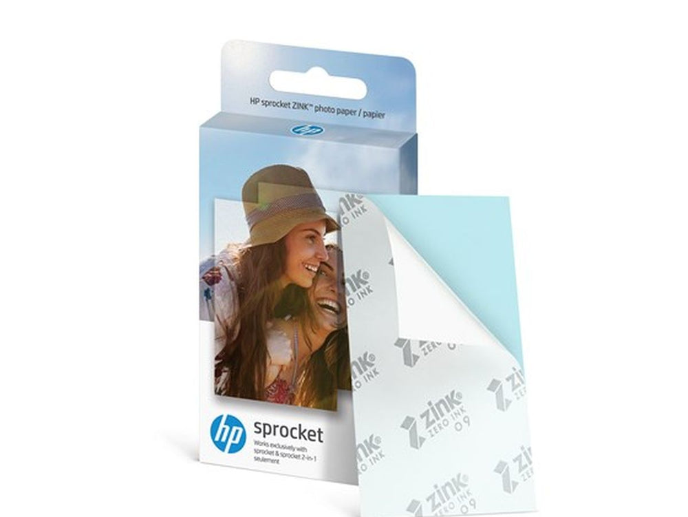 The HP Sprocket has the capacity to hold up to 10 photo sheets simultaneously, enabling it to produce 35 prints on a single battery charge. The prints are made on 2" x 3" (5 x 7.6 cm) photo paper, which boasts an adhesive back that lets you stick your photos wherever you see fit.