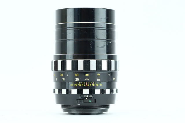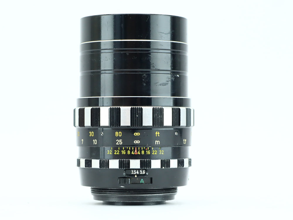 The Steinheil Edixa 135mm f/3.5 is a beautifully made telephoto lens from West Germany, known for its precise engineering, warm color rendering, and vintage character. Originally designed for Edixa SLRs, it’s typically fitted with an M42 screw mount, making it easy to adapt for use on modern mirrorless systems. A great choice for portraits, nature, and classic film shooting.