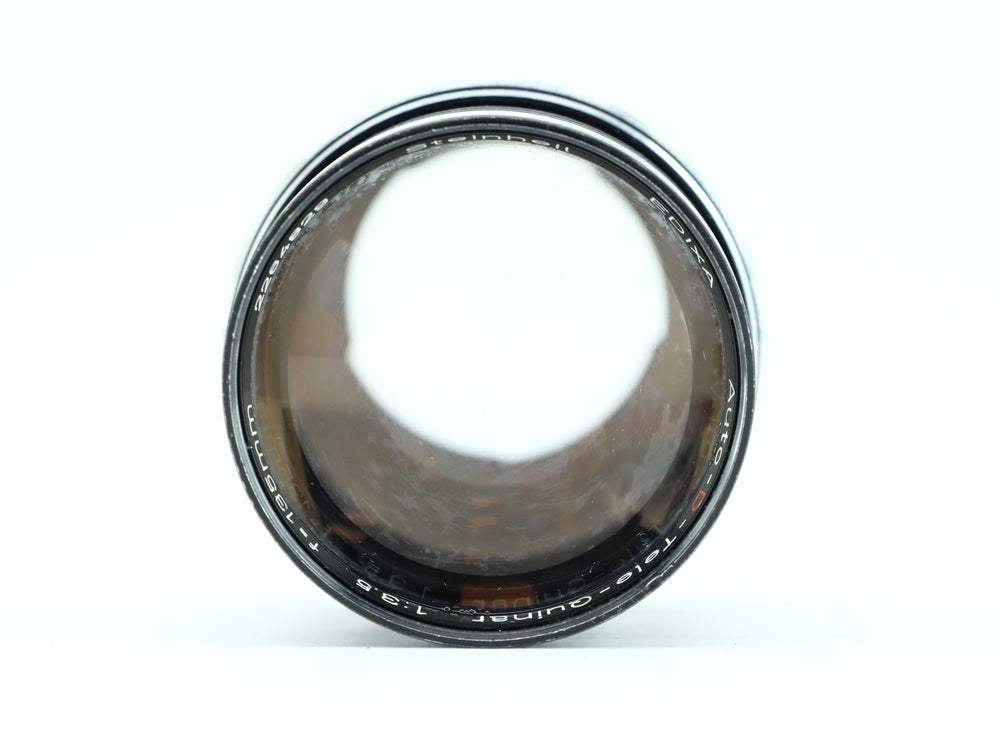 The lens is in good working order. Focus ring turns smoothly and the aperture clicks firmly through all stops. Glass is clean with no haze or fungus, and only minimal internal dust. Cosmetically, the barrel shows light user marks consistent with age, but no dents or structural damage. A beautiful and functional piece of optical history.