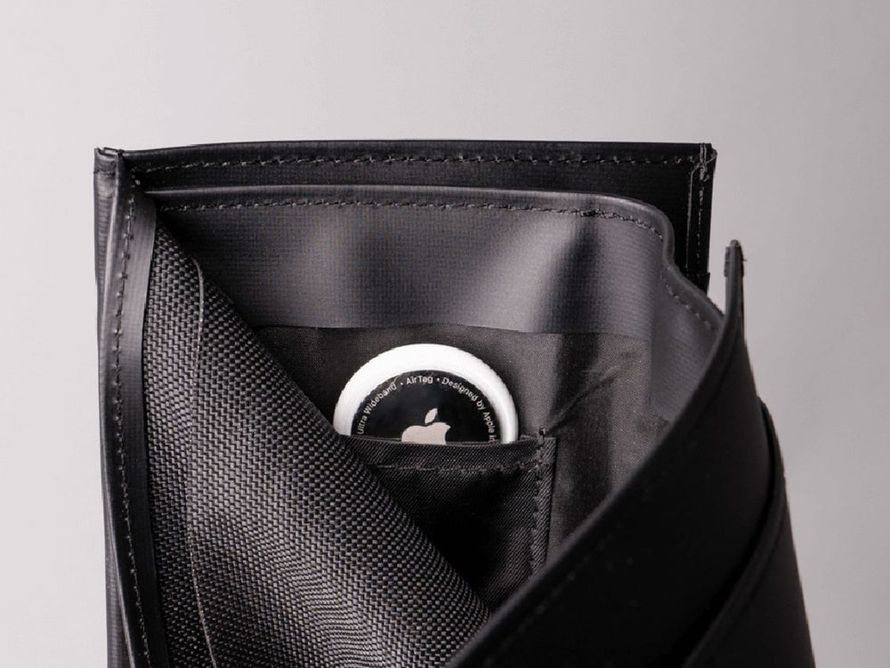 - Features a hidden Airtag pocket.