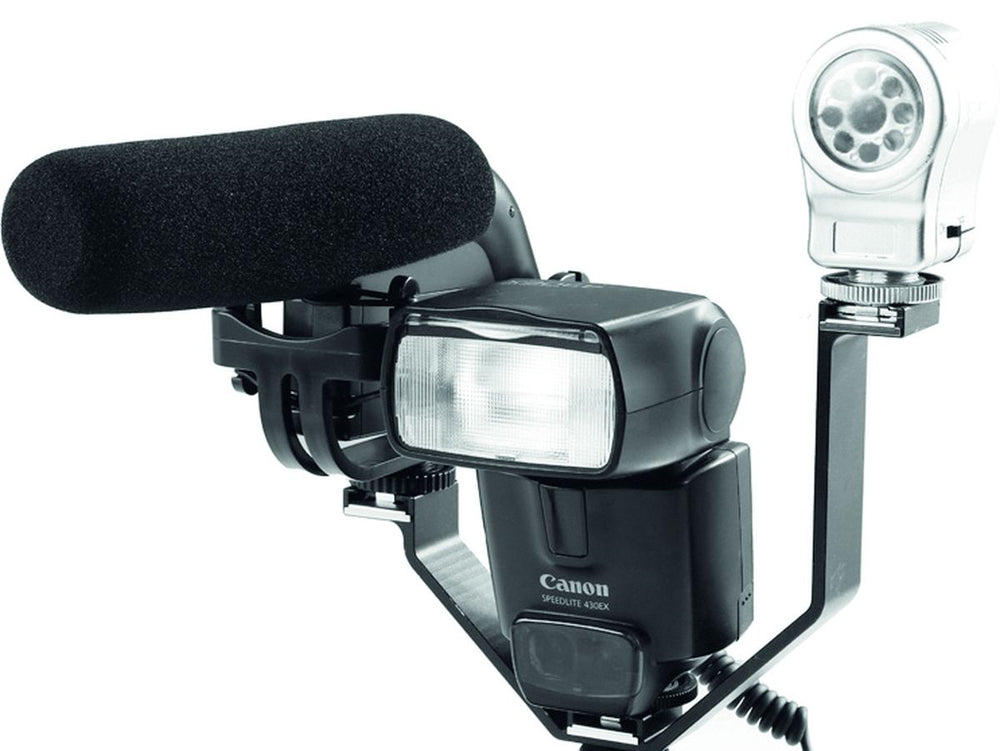 Equipped with three universal cold shoe mounts, this bracket can be easily attached to the hot shoe of your camera. It also features a 1/4"-20 threaded socket, which allows for mounting on a tripod or other support equipment. Compact and user-friendly, this bracket is built to professional standards to meet various filming needs.