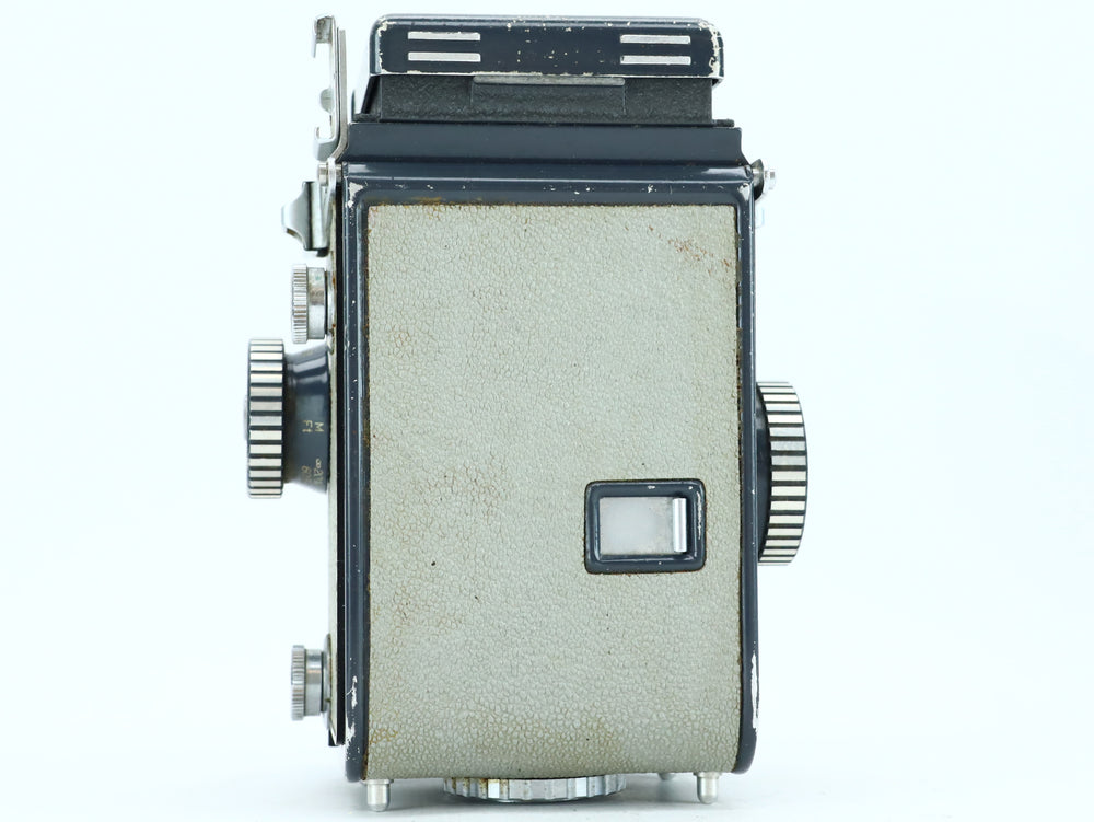 Camera is tested and working. Lens is clean with no haze or fungus. Shutter fires accurately at all speeds. Focusing screen is bright and usable. Cosmetically in good shape with some signs of use on the body. Please note: 127 film is no longer widely produced, but still available via specialty suppliers.