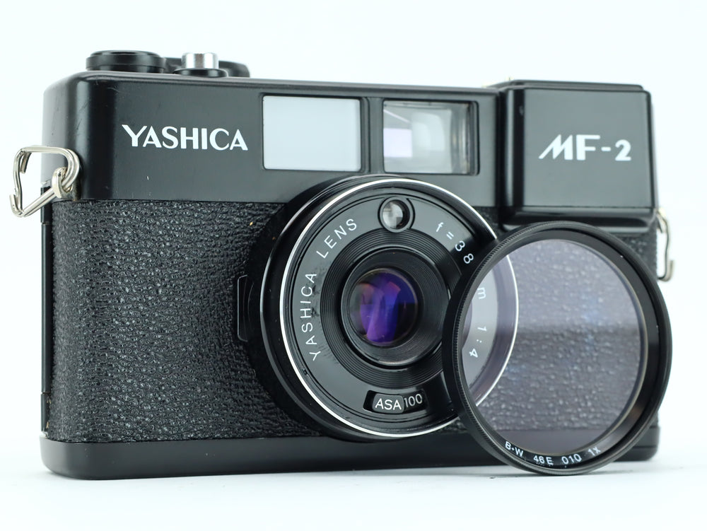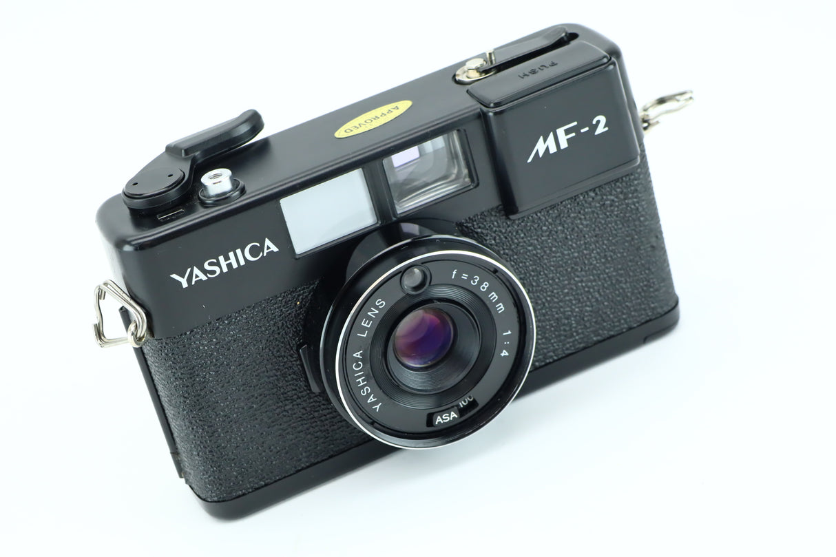 Introducing the Yashica MF-2 with a 38mm f/4 lens, a reliable and compact film camera designed to capture life's moments with ease and simplicity. The Yashica MF-2 is perfect for beginners and enthusiasts alike, offering straightforward operation and high-quality optics for stunning results.