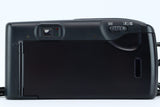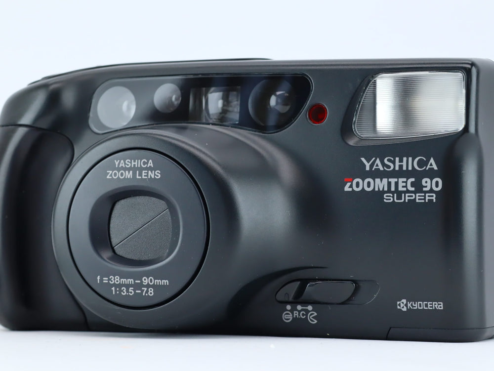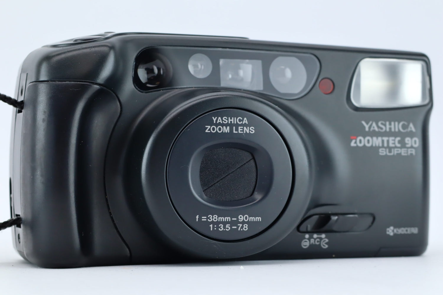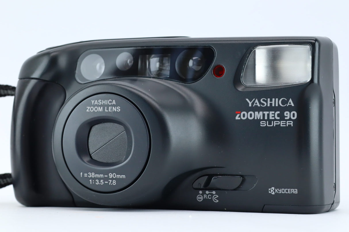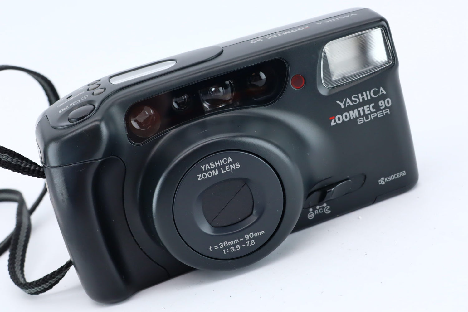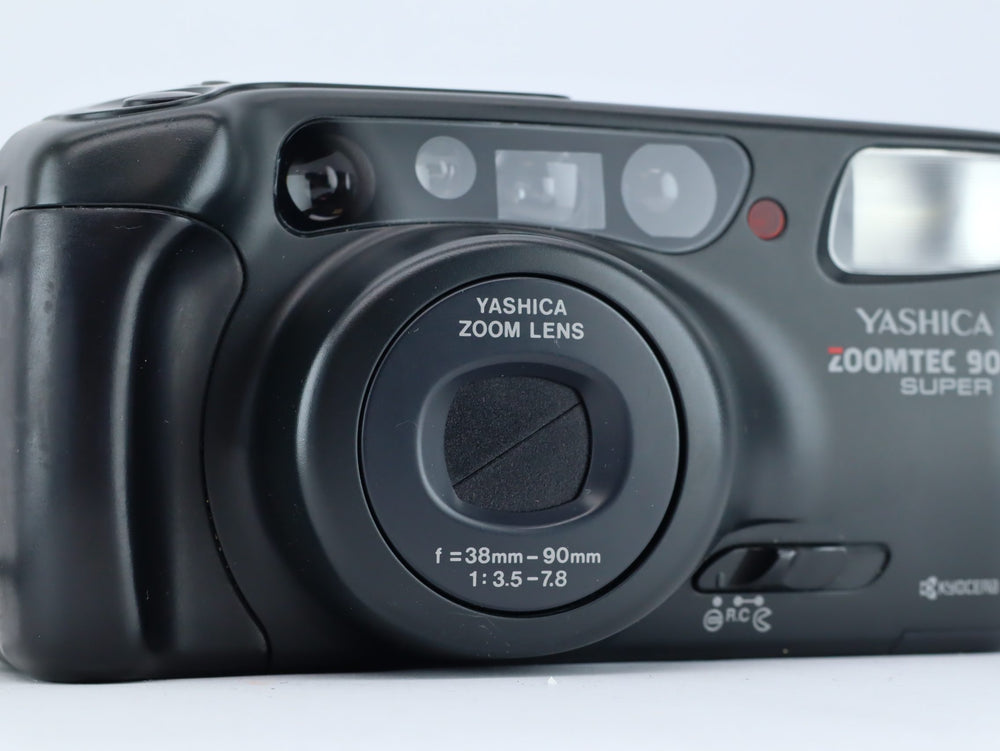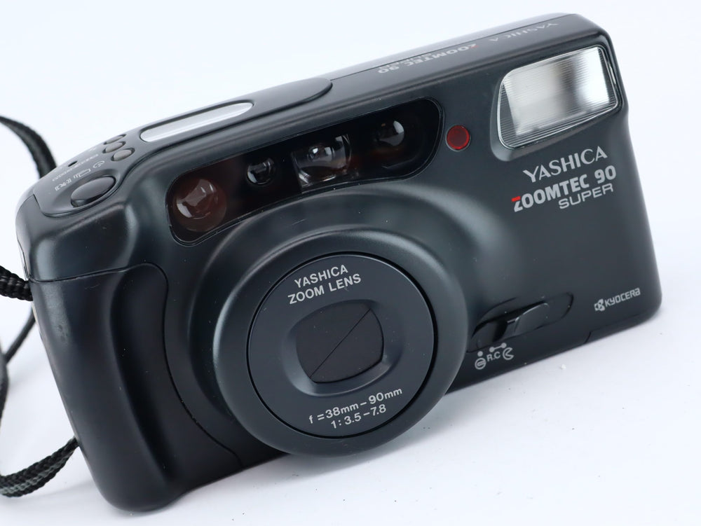 The Kyocera Zoomtec 90 Super is a 35mm film autofocus compact camera manufactured by Kyocera. It first appeared circa 1992. Auto-focus with macro mode. Multiple shot mode and sports mode. The camera has some scratches in the body and some logos but nothing serious.