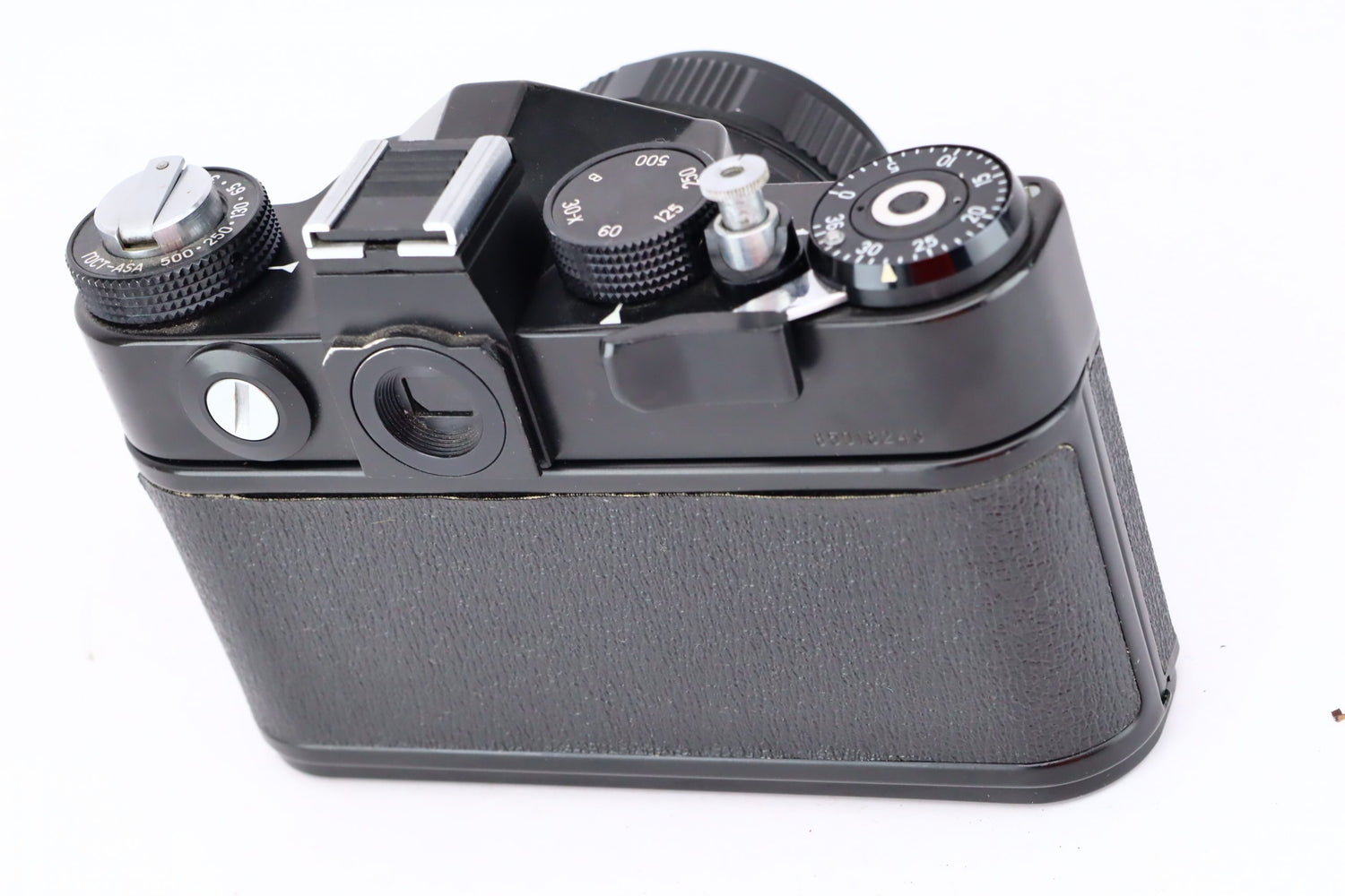 The 12SD is similar, but with a restyled shutter speed dial. A later version of the 12SD has a reshaped top plate and pentaprism housing.